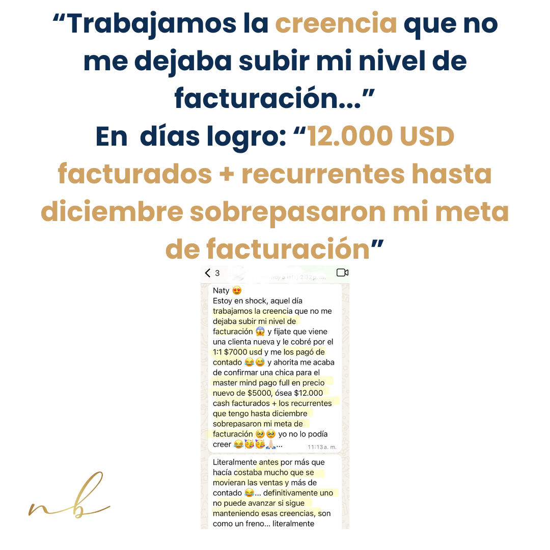 Elevar tus precios SIEMPRE va a estar relacionado a la previa ELEVACIÓN INTERNA que realices.Hace un tiempo atrás yo también tenía miedo a que si subía mis precios nadie me iba a comprar, pero eso es una creencia muy limitante que te impide crecer.Comencé a hacer el trabajo de elevación interna acompañado de las estrategias y pase de cobrar por espacios muy poderosos 397 usd a miles de dólares y los pagan sin problemas (esto se debe a que implemento mi método N.E.O, el que veremos dentro del Programa).Hoy en día tengo clientas que entran a mis espacios queriendo elevar sus precios a incluso 10mil usd y los terminan vendiendo con total certeza y liviandad, porque nos enfocamos en crear la identidad que se requiere para sostener la energía de la transacción y recibir constantemente altas cifras.Hace poco una clienta me comento que quería subir uno de sus espacios a 10mil usd, lo hizo, pero al momento de cobrarlos sintió mucha resistencia tanto a nivel de creencias como a nivel físico (nervios, respiración acelerada, etc). Luego del trabajo que hicimos logro no solo cerrar mas ventas de 10mil usd sino hacerlo desde un lugar de placer total.Y después de eso y de trabajar con decenas de clientas más, fue que decidí crear este espacio para ti también.¿Estás lista para subir tus precios y ser altamente pagada con total fluidez?